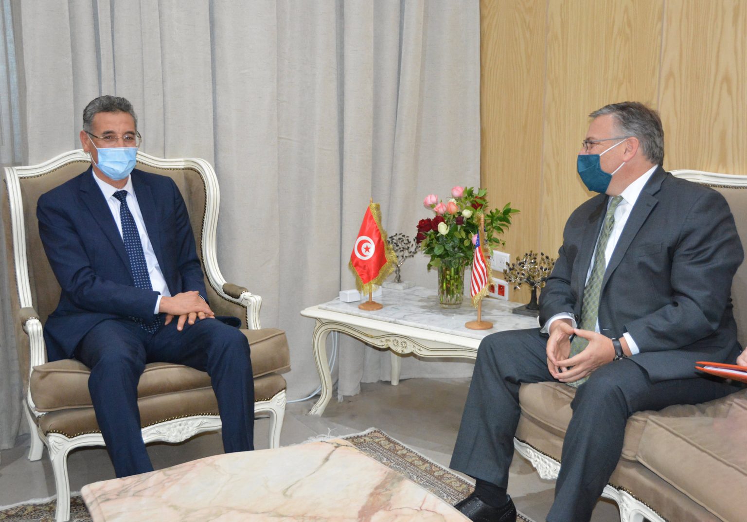 Le ministre de l’Intérieur, Taoufik Charfeddine et l’Ambassadeur des Etats-Unis en Tunisie, Donald Bloom, ont discuté, hier, des perspectives de la coopération sécuritaire, notamment en ce qui concerne la mise en œuvre de la stratégie conjointe d’assistance sécuritaire. C’est ce qui ressort d’un communiqué publié sur la page officielle du ministère.