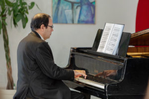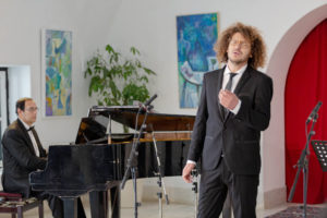 Le récital débute par « Elégie » de Jules Massenet, véritable hymne à la musique, dans lequel le baryton-basse Montasser Bazzez dévoile ses graves vibrants et ses aigus lumineux. Il impose d’emblée une interprétation nuancée. La petite taille de la salle, qui place les spectateurs les plus éloignés à quelques mètres seulement de l’artiste, lui permet parfois de murmurer son chant, lui conférant une délicatesse qu’il brise aussitôt de forts puissants. Il enchaîne par des extraits de Bizet en interprétant « La jolie fille de Berth, la flamme de l’amour ». Il ne laissait personne indifférent lorsqu’il chantait Verdi « Macbeth, come dal ciel précipita » et « Simon Boccanegra, A te l’estremo addio ».