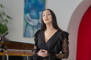L’artiste soprano Nesrine Mahbouli capte l’intérêt de son auditoire par une grande présence scénique. Elle vibre de toute sa personne, dans les expressions du visage, les mouvements des mains, faisant vivre les personnages et les paroles des morceaux qu’elle interprète. Il y a dans sa prestation beaucoup d’authenticité en interprétant des airs de Fauré « Au bord de l’eau » ainsi que de Bizet « Carmen près des remparts ». Sa voix coule comme du miel. Elle se découvre profondément grave et puissante. Un univers où chaque syllabe se déguste, chaque son s’apprivoise. Très à l’aise, elle conclut son passage avec des airs de Puccini, Verdi et Donizetti.