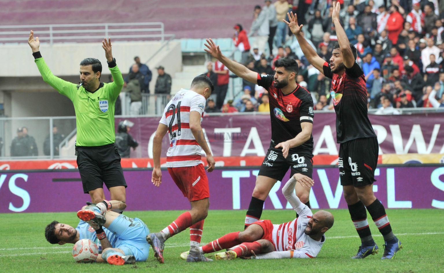 Dans un choc avec le gardien étoilé Ali Jmel, au cours du classico (1-1) de ce samedi 5 mars, Saber Khlifa n’a pas pu se relever. Secouru par le staff médical du Club Africain (CA) et les secouristes de la Protection civile, le capitaine clubiste a été évacué sur une civière et emmené d’urgence dans une clinique des environs.