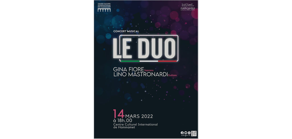Gina Fiore, soprano, et le guitariste Lino Mastronardi se connaissaient bien pour s’être produits souvent ensemble. Ils ont en commun une immense reconnaissance internationale. L’une au chant et le second à la guitare. Les mélomanes ne voudraient en aucun cas passer à côté de ce rendez-vous musical qui s’annonce haut en couleurs et en tonalités lundi 14 mars 2022 à 18h00 à Dar Sebastian au Centre culturel international de Hammamet.