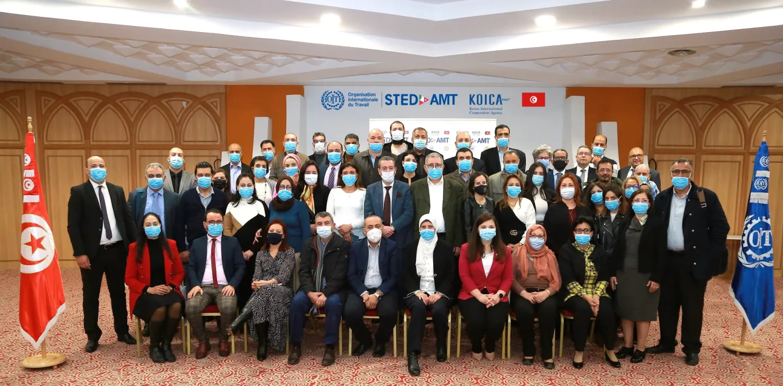 Cet atelier de travail s’est tenu dans le cadre du Projet STED-AMT « Compétences pour le commerce et la diversification économique: Alignement des compétences sur les stratégies de développement sectoriel en Algérie, au Maroc et en Tunisie », mis en œuvre par l’Organisation internationale du Travail (OIT) et financé par l’Agence Coréenne de Coopération Internationale (KOICA). Ces sessions de travail ont vu la participation de l’ensemble des parties prenantes du Projet et mandants de l’OIT, dont des représentants du Ministère de l’emploi et de la formation professionnelle (DGPE) et d’autres départements ministériels et institutions publiques, des représentants de l’Union générale des Travailleurs Tunisiens (UGTT) et de l’Union Tunisienne de l’industrie, du commerce et de l’artisanat (UTICA), ainsi que les professionnels et industriels des trois chaînes de valeur ciblées en Tunisie par le Projet.