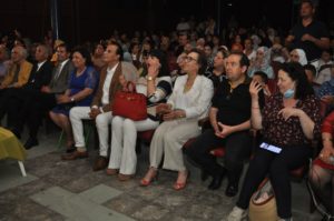 A mesure que l’on avance dans le temps, l’ambiance se fait plus festive, le rythme plus tonique et l’atmosphère plus allègre. Egal à lui-même et très gai, Chokri Bouzaiene a émerveillé le public par son tube « Sali Ala Sidi Naabi ». Le public chantait à l’unisson, tapait des mains, applaudissait, dansait… Des youyous fusaient de partout. Un échange sublime entre artistes et public. Une vraie osmose émotionnelle. Une soirée réussie et qui témoigne, si besoin est, de la réussite des militantes et militants de l’APAHT-Nabeul qui ont gagné le pari d’entretenir l’espoir d’une société plus solidaire que jamais.