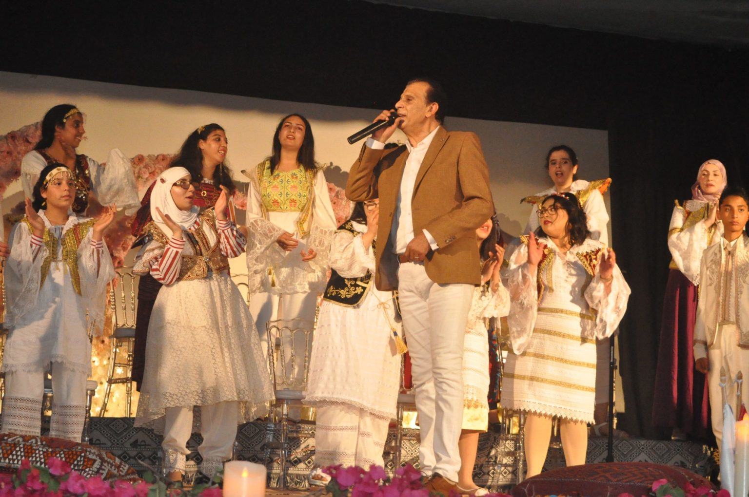 Leurs voix magnifiques accompagnées du chanteur Chokri Bouzaiene, de l’éducatrice Sawssen Zemni et l’organiste Maher Ghalleb ont ébloui l’assistance. La star Bouzaiene a essayé de mettre du cœur et de l’énergie à chaque morceau et de multiplier ses performances en interprétant trois succès dédiés aux mères « Itawil Omrouk Ya Oumima ya Henina », avec, à chaque fois, une reprise en chœur par un public maîtrisant presque par cœur le texte et la mélodie. L’artiste a pu développer rapidement une complicité avec la chorale en interprétant « ma7lek yammi ».