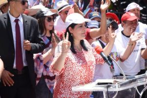 « Nous refusons toute atteinte à la République et à l’Etat de droit et des institutions (…) Nous sommes ici pour faire entendre notre voix malgré les tentatives visant à nous faire taire », a-t-elle lancé.