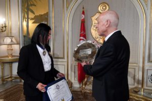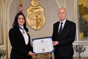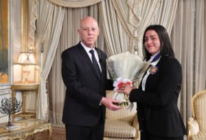 Le président de la République, Kaïs Saïed a décoré ce jeudi 14 juillet 2022 lors d’une cérémonie au palais de Carthage, la joueuse de tennis tunisienne Ons Jabeur des insignes de Grand officier de l’Ordre national du mérite sportif. Cette distinction, lit-on dans un communiqué de la présidence, intervient en signe de considération à la sportive tunisienne pour ses exploits internationaux.