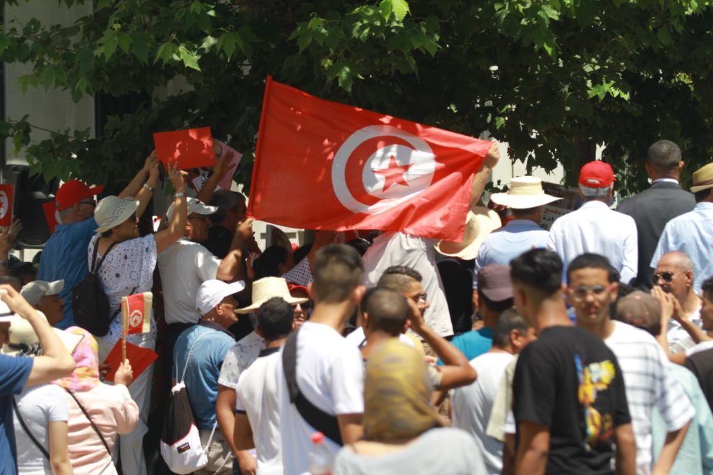 Ce rassemblement s’explique par la décision du gouverneur de Tunis d’empêcher le PDL de manifester à l’Avenue Habib Bourguiba le 25 juillet 2022.