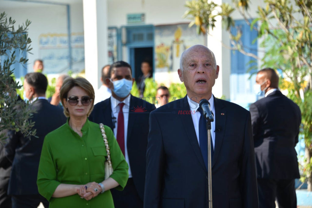 Partager Facebook Twitter LinkedIn Pinterest Email Le Président de la République, Kais Saïed, et son épouse Ichraf Chebil se sont rendus, ce lundi matin, au bureau de vote de l’école primaire Ennasr 1 à la Cité Ennasr à Tunis pour voter au référendum sur la nouvelle constitution. élections - vote - scrutin Ichraf Chebil Kais Saied Référendum