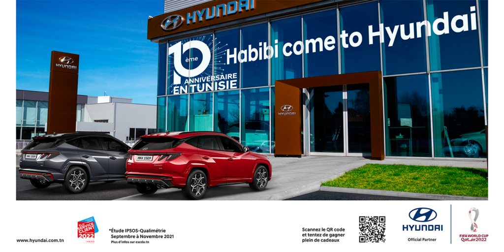 A l’occasion de son 10ème anniversaire et étant sponsor officiel de la coupe du monde de la FIFA Qatar 2022, Alpha Hyundai Motor, distributeur officiel de la firme automobile sud-coréenne Hyundai en Tunisie et leader des ventes de véhicules légers à fin Août 2022, lance ses festivités avec un jeu qui s’étale du 8 Septembre 2022 au 31 Octobre 2022 offrant la possibilité de gagner plein de cadeaux.