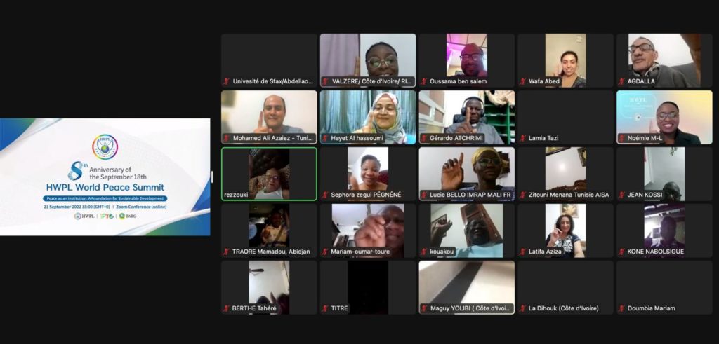 Le 21 septembre, la 8ème commémoration du Sommet pour la Paix mondiale du 18 septembre d’HWPL s’est tenu en ligne avec le thème  » la paix en tant qu’institution : une fondation pour le développement durable. Cet événement, qui s’est tenu dans 00 pays à travers le monde, dont la Côte d’Ivoire, la Tunisie, l’Algérie et le Maroc, a rassemblé 2000 participants en ligne pour réaffirmer l’importance du développement durable garanti par l’institutionnalisation de la paix, alors que la communauté mondiale doit encore surmonter la pandémie de la COVID-19 et faire face à d’autres menaces causées par le conflit russo-ukrainien.