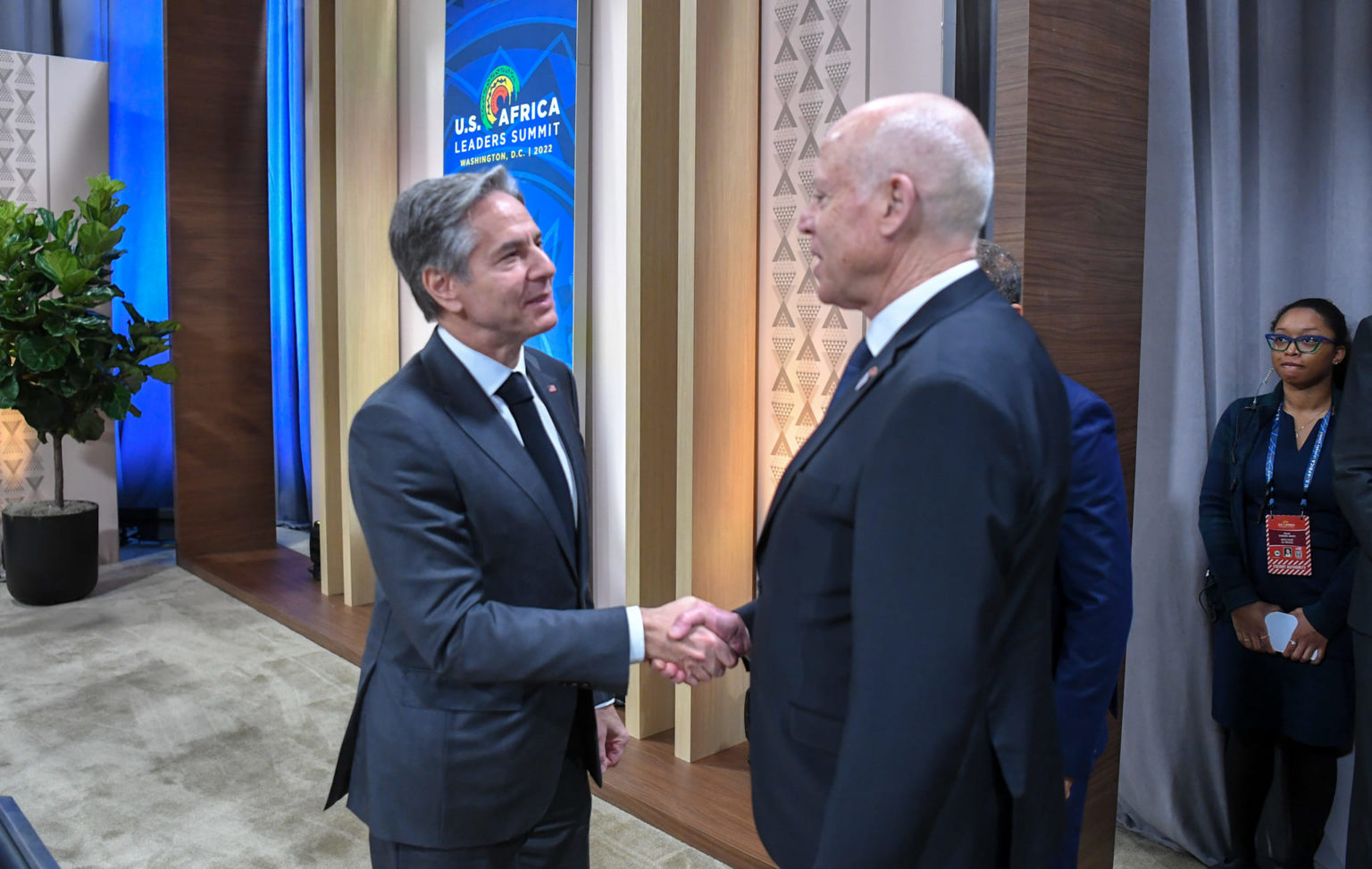 Le président Kaïs Saïed a eu, mercredi, une audience avec le secrétaire d’Etat américain, Antony Blinken, à Washington, à l’occasion de sa participation au Sommet Etats-Unis-Afrique qui se tient du 13 au 15 décembre au Convention Center.