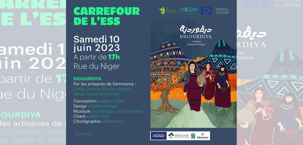 « Digourdiya » est une création du Centre culturel de Djebel Semmama réalisée dans le cadre du projet « Faire » mis en place par la fondation Italienne COSPE. C’est une initiative « artisanartistique » novatrice qui raconte vivement l’intelligence et la résilience des paysannes de Semmama.