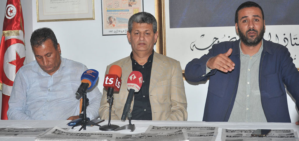 Lors de la conférence de presse organisée ce jeudi, le 15 juin, par le Syndicat national des journalistes tunisiens (SNJT) et la Fédération générale des médias au siège de Dar Assabah, le président du Snjt, Mohamed Yassine Jelassi, a annoncé le lancement d’une série de mouvements protestataires tendant à exercer une sorte de pression sur le gouvernement, et ce, dans le but de sauver l’établissement de la cession et la fermeture. Il a mentionné, en outre, que le Syndicat compte s’adresser durant la semaine prochaine aux autorités compétentes, notamment la présidence de la République, la Présidence du Gouvernement, le Ministère des Finances et El Karama Holding afin de se pencher sur ce dossier. Dans le même contexte, Mohamed Yassine Jelassi a indiqué que le syndicat réclame l’ouverture « d’une enquête visant tous les gestionnaires car ce qui s’est passé dans l’établissement relève d’une suspicion de corruption ».