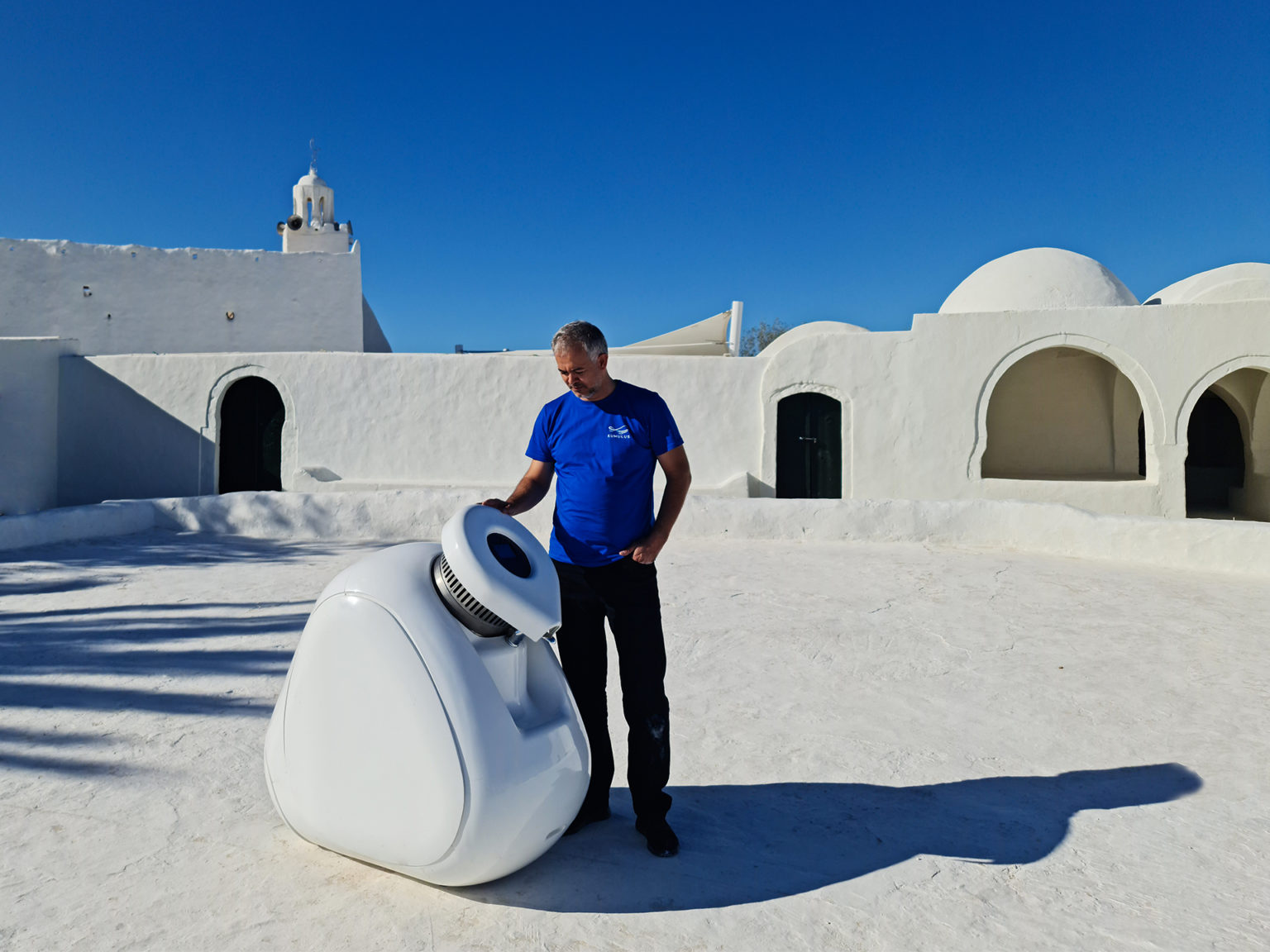 Le Kumulus Amphora est une machine révolutionnaire qui produit de l’eau à partir de l’air, enveloppée dans un design organique et durable, caractéristique de Zouhair Ben Jannet. Il a meme imaginé sa coque à partir de matériaux recyclables, tels que les filets de pêche et les bouteilles en plastique de la mer Méditerranée, démontrant un engagement envers un avenir plus écologique.