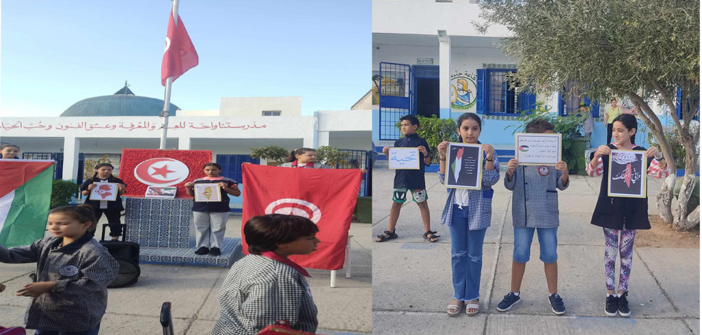 Le ministère de l’Education avait appelé dimanche les établissements éducatifs à organiser, à partir de lundi, une cérémonie de salut aux drapeaux palestinien et tunisien avec une diffusion de l’hymne national des deux pays, en présence des élèves et du cadre éducatif.