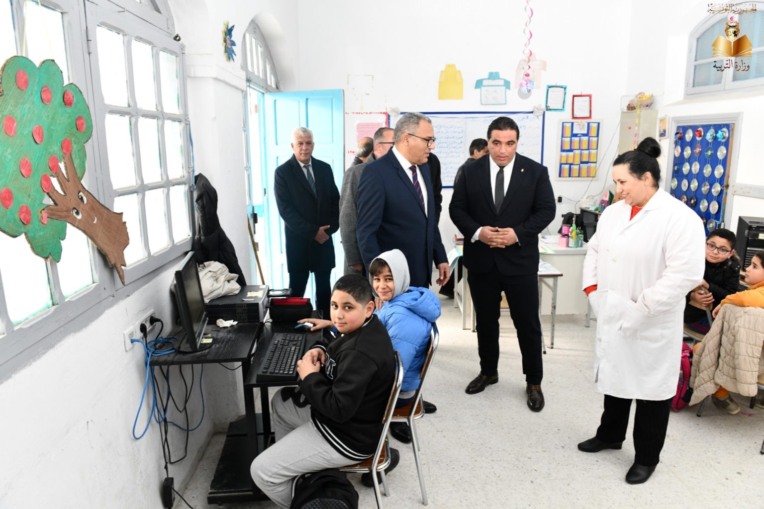 Le ministre de l’éducation, Mohamed Ali Boughdiri, a effectué ce lundi 26 février 2024 une visite inopinée à l’école primaire Rue de la République à Ezzahra dans le gouvernorat de Ben Arous.