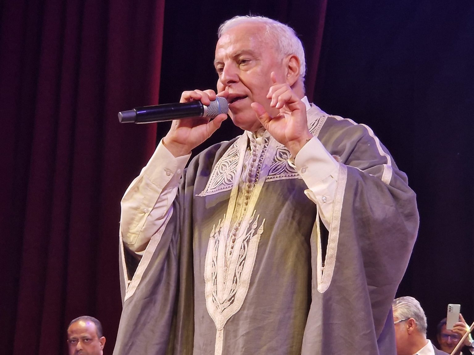 L’artiste a été accompagné d’une troupe musicale sous la direction du musicien Abdelbasset Msahel, formée de cinq violonistes, un violoncelliste, un flûtiste, un organiste, un joueur de qanoun, un oudiste, un contrebassiste, trois percussionnistes et une chorale formée de six membres. La soirée a débuté avec un « ouassla » de Malouf « Laïba Adhabiou fi akli » et « Ya Achikin », puis l’artiste a enchainé avec deux de ses belles chansons « Ya Moulet El Aïn el kahla » et « Fi Aïdek Nahdilek warda » qui furent bien applaudies par le public.