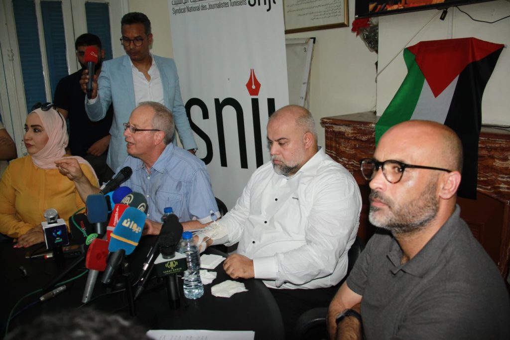 Le journaliste palestinien WaelDahdouh est arrivé hier à Tunis où il a été accueilli en grande pompe à l’aéroport Tunis-Carthage par plusieurs médias et des membres du bureau exécutif du Syndicat national des journaliste tunisien (SNJT). Icône de la résistance palestinienne ayant perdu plusieurs membres de sa famille lors des frappes israéliennes sur Gaza participe aujourd’hui à une conférence organisée dans le cadre du programme des Ambassadeurs d’Al Jazeera, et ce en collaboration avec l’Institut de presse et des sciences de l’information et le Syndicat national des journalistes tunisiens.