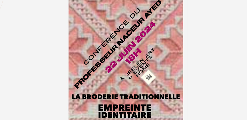 Le point de broderie (forme géométrique), spécifique à Nabeul, a connu son essor depuis plus d’un siècle et connaît encore beaucoup de succès. Pour rehausser cet artisanat d’art, Naceur Ayed, prof émérite en chimie et  spécialiste des matières naturelles sensorielles  veille à ce que ce métier soit transmis aux jeunes intéressées pour que cet artisanat soit consigné dans le  durable. D’ailleurs, il a assuré avec des brodeuses une reproduction de ghorzet Nabeul avec des fils teints au naturel ce qui ajoute une valeur de feeling à cette spécialité. Pr. Ayed dévoilera l’une des plus grandes richesses de l’artisanat tunisien, connue pour son élégance et son raffinement, la broderie traditionnelle nabeulienne, cet après-midi à 18h00 à l’espace jeelen à Nabeul tout en proposant un voyage enchanteur dans cet art délicat et exigeant, raffiné et intime, qui a connu influences et mutations diverses au cours du temps.