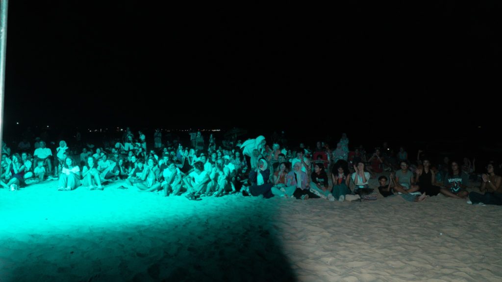 « On n’était même pas au courant, on est sorti de l’eau pour danser. C’est magnifique, une expérience à renouveler », raconte Alexandra , en compagnie de sa mère et sa fille. A 21h30, Sofien Safta quitta la scène pour laisser le public écouter le bruit des vagues et assister à une projection de films