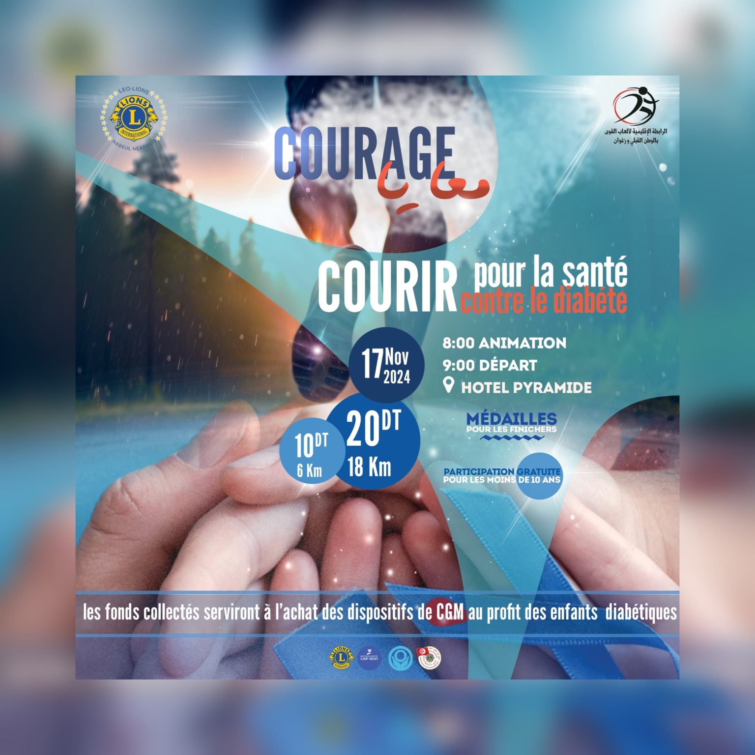 Le Léo Lions Club Nabeul organise, ce dimanche 17 novembre 2024, en collaboration avec la ligue régionale d’athlétisme du Cap Bon et de Zaghouan, un évènement sportif adossé à la lutte contre le diabète et baptisé « Courir pour la santé contre le diabète ».