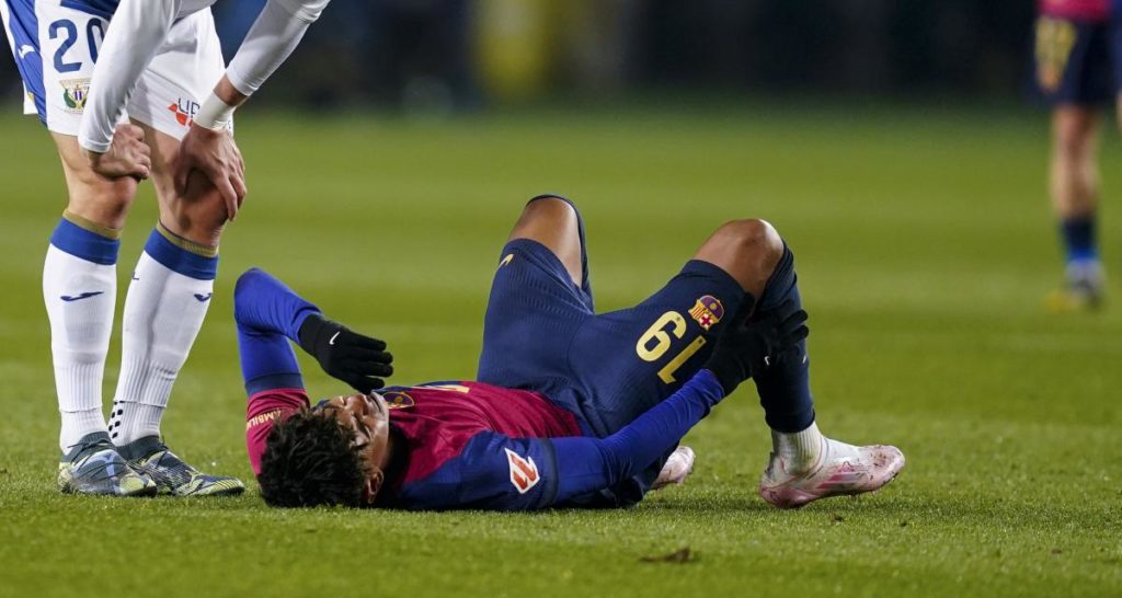 Énorme coup dur pour le FC Barcelone et Lamine Yamal (17 ans). Sorti sur blessure à un quart d’heure de la fin du match perdu contre Leganés (0-1), le jeune international espagnol laissait encore une fois craindre le pire. Malheureusement pour Lamine Yamal, la mauvaise nouvelle s’est confirmée. Le joueur sera tenu éloigné des terrains pendant un bon moment. «Lamine Yamal a souffert d’un traumatisme à la cheville droite durant le match contre Leganés hier soir. Les examens réalisés lundi matin montrent une blessure de premier degré au ligament tibio-fibulaire. La durée de son absence est estimée à 3-4 semaines», indique le communiqué publié par le club catalan.