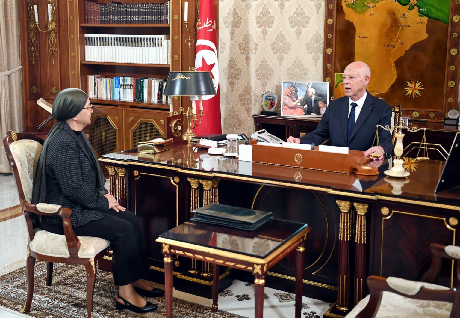Le président de la République, Kaïs Saïed, a reçu, le 8 janvier au Palais de Carthage, Leïla Jaffel, ministre de la Justice.