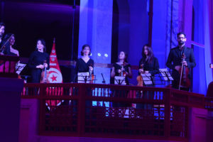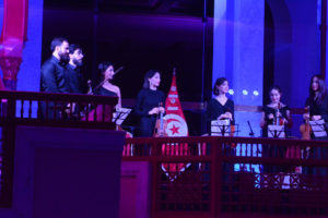 Ils étaient huit musiciens accompagnés de Farah Zribi, Firas Kolsi et Meriem beltouhami à ouvrir le bal au hall d’Hasdrubal Hammamet lors d’une soirée musicale dédiée à Mohamed Amouri . Ils ont enchanté le public avec une mélodie « Ghrib Wa Jali »ces musiciens en herbe ou plus aguerris ont fait preuve de beaucoup de talent.Concentrés, attentifs, avec un jeu sensible et maîtrisé, ils ont conquis un public à la fois enthousiaste et impressionné . Ces jeunes artistes ont vécu des moments intenses en entendant les applaudissements les récompensant du travail assidu effectué durant leur résidence.