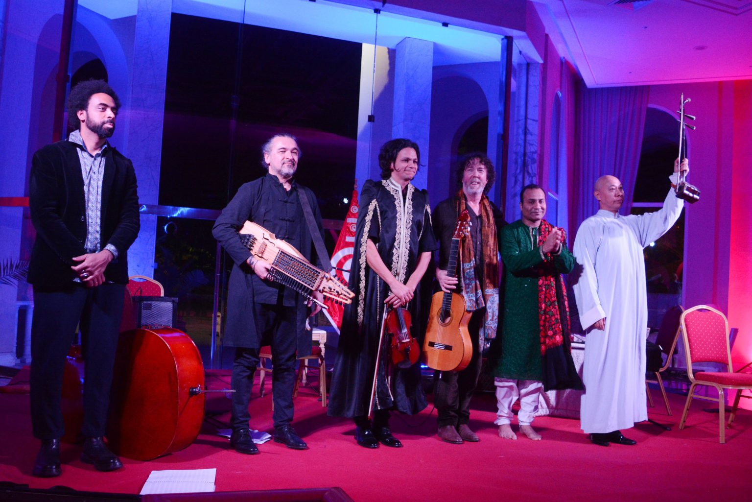 La deuxième partie du spectacle a été animée par la formation internationale Duplessy & The Violins of the World, un concert de sortie de résidence produit par Laurent Jost, directeur musical de la Fondation Hasdrubal, en partenariat avec l’Ambassade de France et l’Institut français de Tunisie.Le guitariste Mathias Duplessy était heureux sur scène . Il n’a de cesse de diversifier ses sources d’inspiration et de collaborer avec des artistes de toutes les traditions, abolissant ainsi les frontières des genres, pour aboutir à un style sans pareil.Il y a 15 ans, il crée le projet des « violons du monde » avec l’indien Sabir Khan au sarangi, le tunisien Zied Zouari au violon oriental, le chinois Guo Gan au erhu, le mongol Mandakh Daansuren au morin khuur et voix ainsi que le Nyckelharpa suédois d’Aliocha Regnard qui croisent à nouveau leurs archets sur scène tout en ayant parallèlement sorti le 25 octobre 2024 leur quatrième album The Road with you.