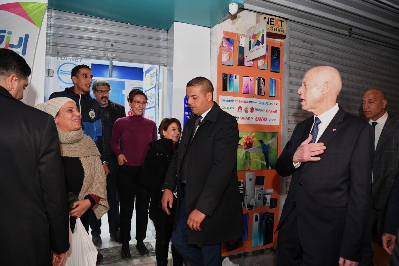 Avant de se rendre au quartier de Bab Souika, le Chef de l’Etat a effectué une visite aux locaux de la commission de confiscation relevant du ministère des Domaines de l’Etat et des Affaires foncières, au siège du département des finances et au palais du gouvernement à la Kasbah.