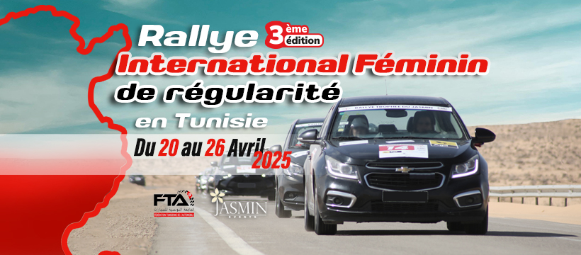 La troisième édition du Rallye féminin international « Trophée du Jasmin » se tiendra du 20 au 26 avril 2025 en Tunisie avec la participation de 60 concurrentes venues de 9 pays, dont la France, l’Algérie, le Maroc, la Turquie et la Côte d’Ivoire.