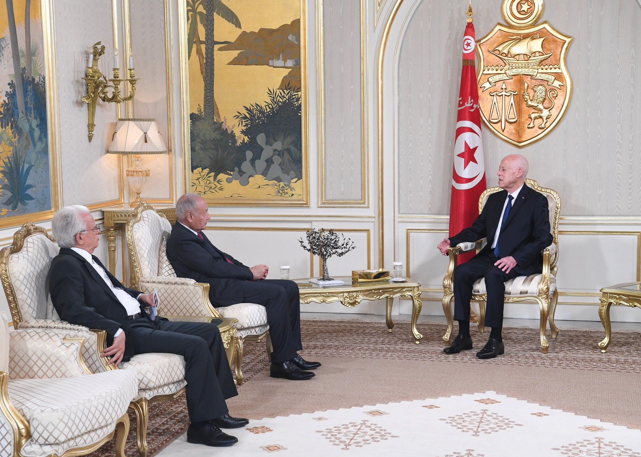Kaïs Saïed reçoit le secrétaire général de la Ligue arabe et réaffirme le soutien indéfectible de la Tunisie à la cause palestinienne