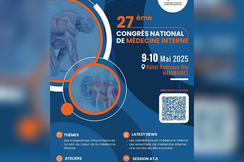 La Société tunisienne de médecine interne organise son 27e Congrès national les 9 et 10 mai à Hammamet. Cet événement scientifique réunira des spécialistes tunisiens et algériens autour des dernières avancées en médecine interne, avec un accent particulier sur les myopathies inflammatoires et leur interaction avec les maladies auto-immunes affectant les organes vitaux.