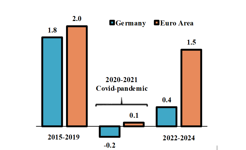 Après la Seconde Guerre mondiale, l’Allemagne a longtemps incarné la puissance économique de l’Europe. Toutefois, au cours des deux dernières décennies, des vents contraires fondamentaux ont commencé à s’accumuler : des tendances démographiques défavorables, une réglementation et une fiscalité excessives, ainsi qu’un retard dans la modernisation des secteurs clés face à l’ère numérique et à un paysage mondial en mutation rapide. En conséquence, l’économie allemande a sous-performé, avec un PIB réel qui est resté inchangé au cours des cinq dernières années — une évolution peu flatteuse comparée à la croissance de 12,2 % aux États-Unis ou même à celle de 5 % dans le reste de la zone euro sur la même période.