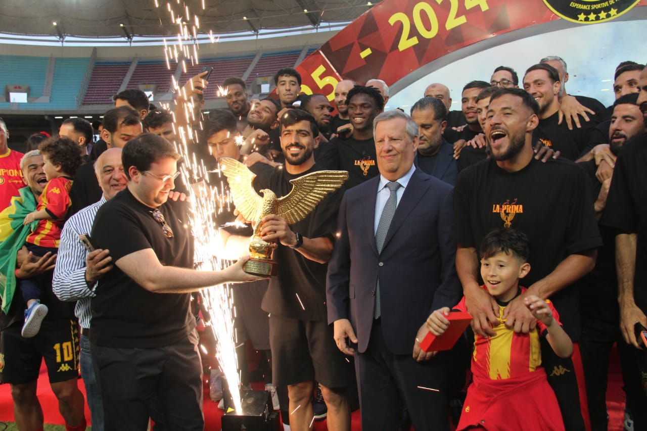 Le stade Hamadi Agrebi a vécu une après-midi exceptionnelle au cours de laquelle l’Espérance Sportive de Tunis a reçu le trophée de champion de la saison 2024/2025 dans une ambiance des grands jours et devant une assistance record, des fans venus de tous les coins de la République pour assister et participer à cette fête, celle du 34ème titre et se second consécutif remporté avec beaucoup de mérite, malgré des passages à vide et des moments de doute. Mais la culture de la victoire et la détermination de tous d’aller sur le podium et vivre ce moment historique.