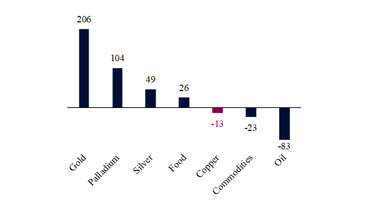 La trajectoire du cuivre a plutôt été similaire à celle de l’ensemble du complexe des matières premières, qui a également souffert de la pression des prix réels de l’énergie.
