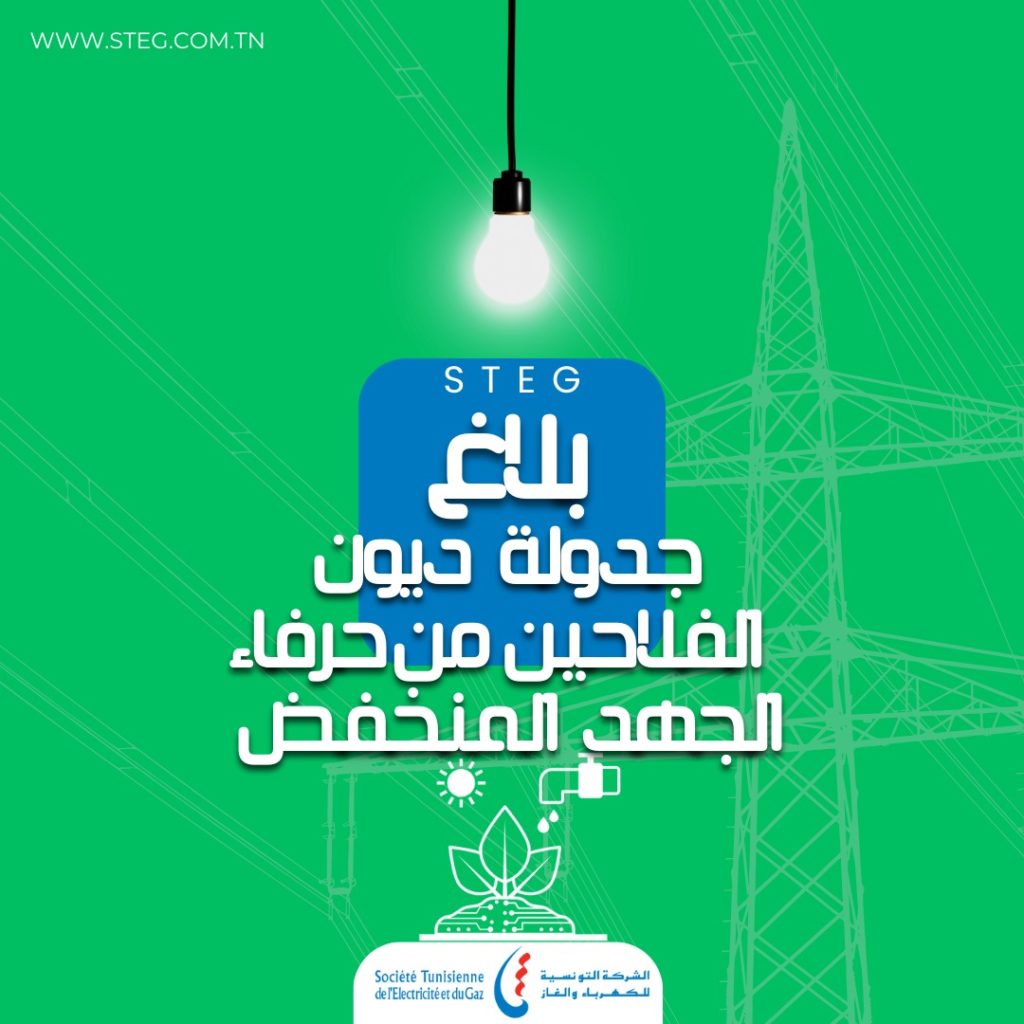 La Société tunisienne de l’électricité et du gaz (STEG) a lancé, à partir du 19 mai 2025, une opération de rééchelonnement des créances impayées des agriculteurs soumis au tarif agricole en basse tension. Ce dispositif permet d’étaler les dettes sur une durée maximale de sept ans.