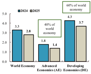 ont également été généralisées dans d’autres économies développées, notamment la zone euro, le Japon et le Royaume-Uni. Par conséquent, le groupe des EA, qui représente 40 % de l’économie mondiale, devrait maintenant ralentir à 1,4 % cette année.