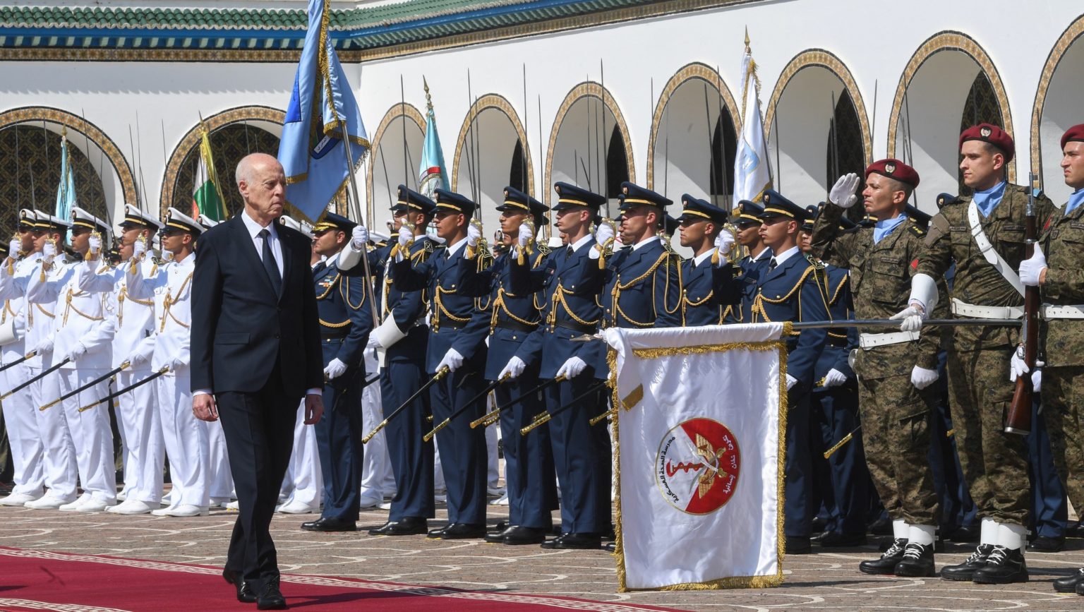 Le Président de la République, Kaïs Saïed, Commandant suprême des Forces armées, a déclaré hier mardi au Palais de Carthage, lors de la cérémonie de célébration du 69e anniversaire de la création de l’Armée nationale, que les forces de l’Armée nationale sont « un rempart inébranlable qui protège la patrie de tout mal… un rempart inébranlable contre le terrorisme, un mur solide contre la contrebande, une forteresse imprenable contre l’immigration clandestine et un mur sur lequel se brise quiconque ose nuire à cette patrie ».