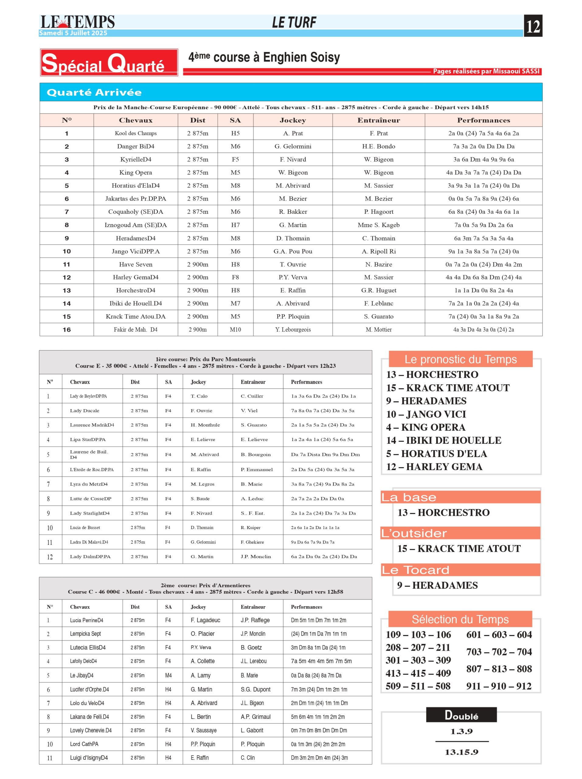 Pronostic Tiercé : Prix Spirit Sainte-Germaine à Pornichet