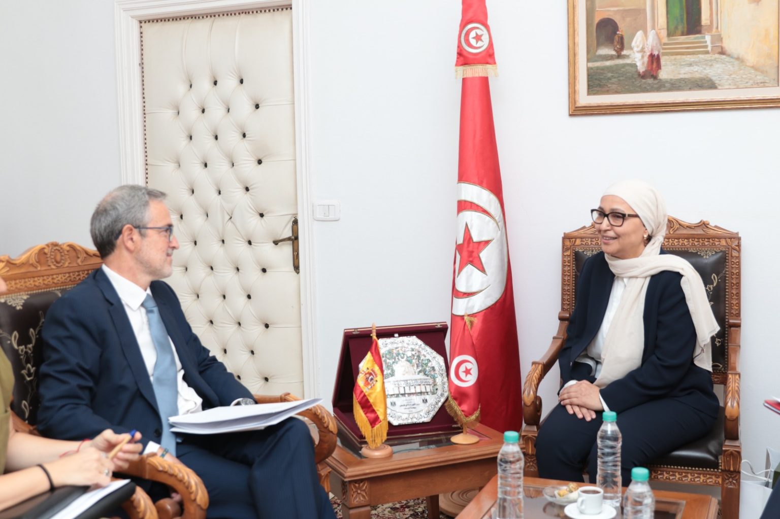 La ministre de la Famille, de la Femme, de l’Enfance et des personnes agées, Asma Jebri, a discuté aujourd’hui, au siège du ministère, avec l’ambassadeur d’Espagne en Tunisie, Javier Puig, de l’état de la coopération bilatérale entre la Tunisie et l’Espagne dans les domaines de la promotion de la femme et du soutien à la famille. Les deux parties ont également examiné les perspectives de développement de cette coopération à l’avenir.
