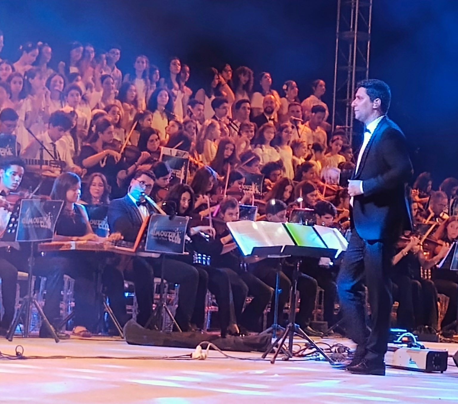 Sur un fond théâtral , une revisite en musique de l’histoire des deux amants les plus connus du 6e art, les 230 musiciens et choristes ont enchanté le public à en juger par les applaudissements après la nouvelle composition « Parfums du Cap Bon » .C’est un concert sur un fond théâtral avec une performance musicale qui intègre des éléments de mise en scène, de décor, ou de narration théâtrale, créant ainsi une expérience plus immersive et visuellement riche pour le public. Ce fut une véritable transformation de l’espace scénique en un décor théâtral, ou même à l’incorporation de personnages et d’actions théâtrales dans le spectacle musical.