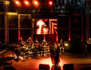 Benjemy a réussi encore une fois son pari à l’amphithéâtre de comme l’atteste amplement son spectacle Entouré d’un orchestre de cordes, de cuivres et de percussions, il a été à la hauteur des attentes du public.. Le théâtre d’Hammamet était plein à craquer.. Les spectateurs ont commencé à arriver vers les coups de 21h. Le concert ne commencera qu’à 22h00.. Sur les sons assourdissants de guitares électriques, de basses et de percussions, Benjemy donne le «la». Et c’est l’euphorie totale. Les musiciens s’en donnent à coeur joie. C’est la frénésie. Les sons émis par leurs instruments les enivrent. De la musique, de la danse et une bonne ambiance, trois ingrédients qui ont marqué le ce grand concert. Un mélange de musique traditionnelle, de musique électronique et un répertoire soufi ont fusionné donnant lieu à une performance de haut niveau, amplifiée par la magie du lieu.