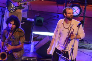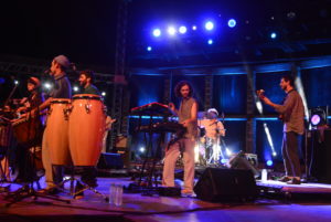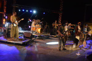 Dès les premières notes, la magie opère. Sur une scène baignée de lumières chaudes, les musiciens unissent leurs instruments, le saxophone, la trompette, la percussion africaine, sud-américaine, la batterie, basse, guitares, claviers et bongos dans une parfaite symbiose Le moment gagne encore en intensité lorsque le groupe dirigé par Paolo Cerruto interprétait des morceaux comme « Furiosa », « Panamor » ou encore « Panorama » livrant ainsi une performance rare et puissante, fusionnant jazz, rock et vibrations contemporaines tenant le public en haleine. Sur scène, une autre énergie se propageait plus tôt dans la soirée avec l’entrée de l’artiste musicien Rabii Brahim, qui rejoint le groupe en plein Live, ajoutant ainsi une touche musicale, propre à lui et une empreinte tunisienne.