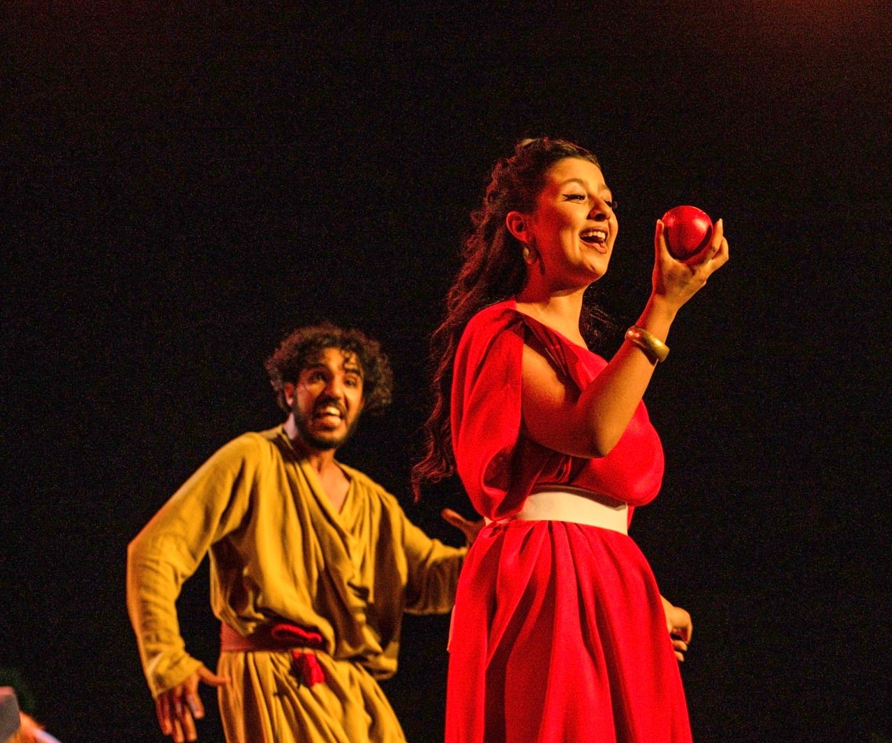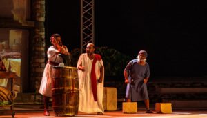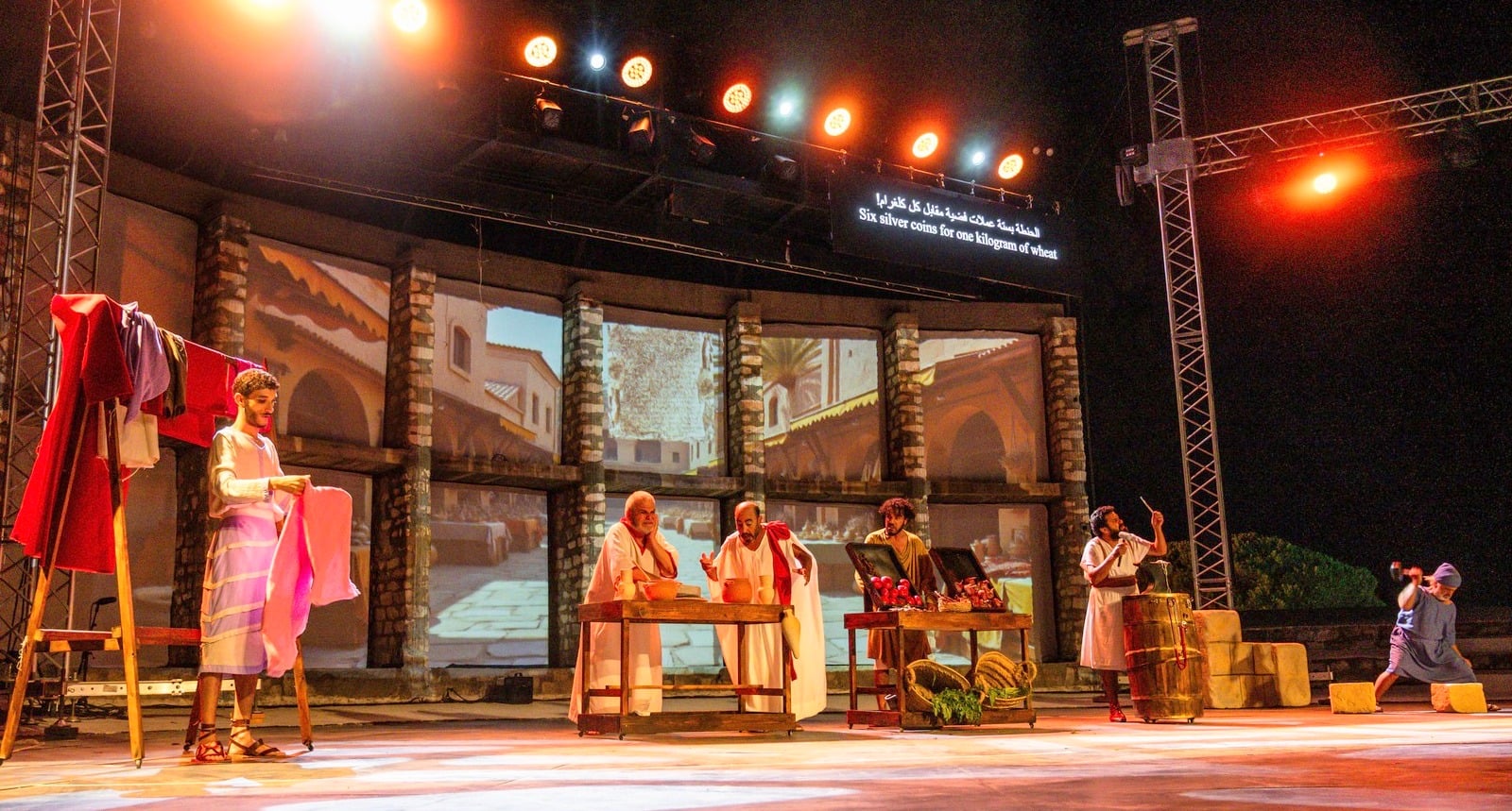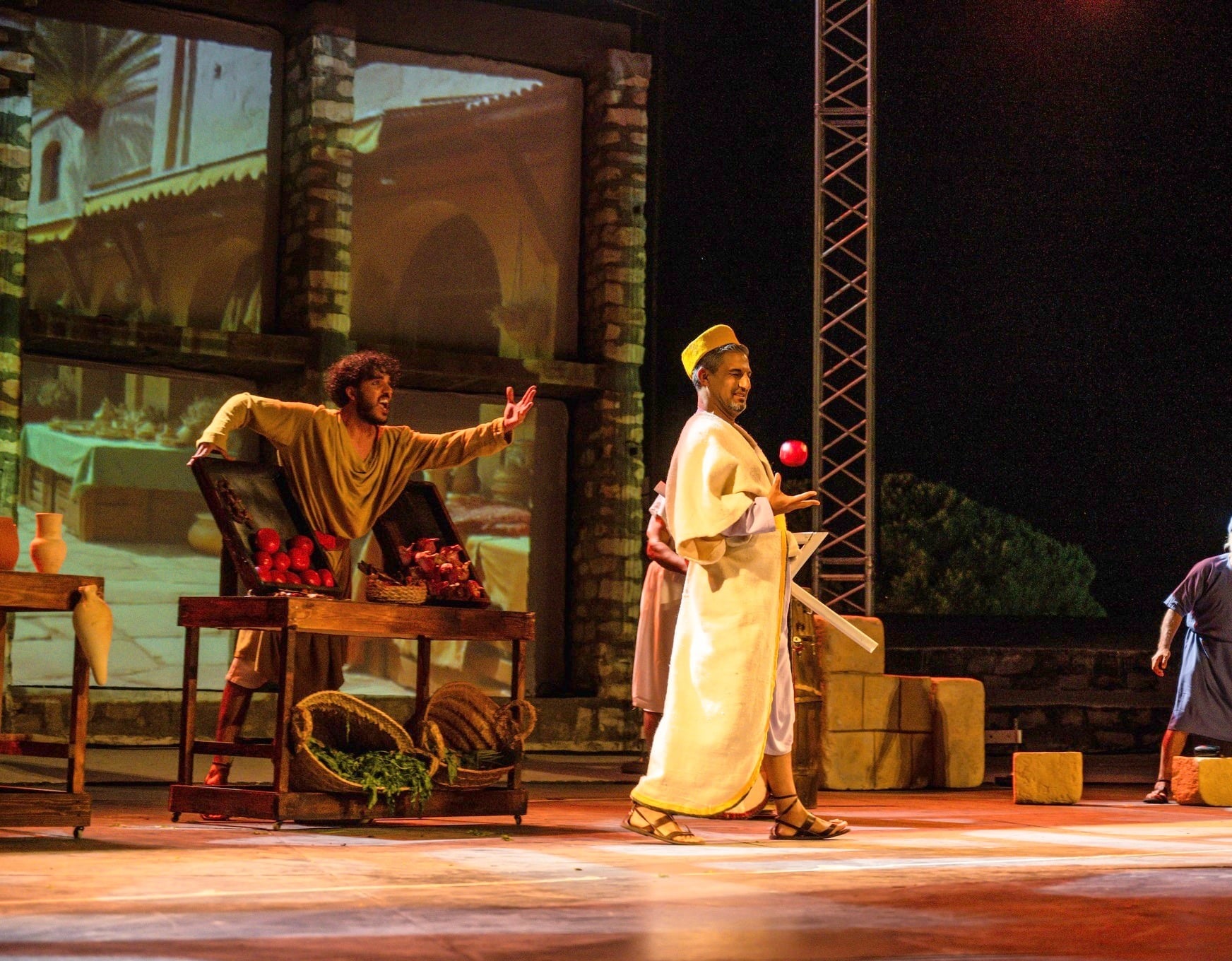 La ville de Kerkouane est au cœur d’une célébration théâtrale. La pièce de théâtre « La Dame de Kerkouane » a pour vocation de mettre en lumière l’histoire punique de cette cité historique, véritable joyau patrimonial du Cap Bon tunisien. Le 4eme art bat donc son plein en cette soirée du 28 juillet 2025, dans l’enceinte de l’amphithéâtre de la ville de Hammamet. Une panoplie d’acteurs, tout âge confondu, ont endossé des rôles différents, en arborant costumes et éléments décoratifs. La création s’ouvre sur une chorégraphie de jeunes danseuses, avant d’embarquer éminemment dans un voyage historique, tumultueux, édifiant, qui se déroule dans une autre époque, où règnent croyances ancestrales, traditions sociales naissantes, relations de sang, de sociétés entremêlés et finalement des affrontements. La trame se situe vers l’an 256 av. J.-C, pendant la première guerre romano-carthaginoise et plus précisément au moment de l’assaut destructeur de l’armée romaine sous le commandement des consuls Lucius Manlius Vulso Longus et Marcus Atilius Regulus. Le point fort de la pièce qui interpelle : c’est son langage. « La Dame de Kerkouane » se déroule presque entièrement en langue punique ancienne -évidemment méconnue- du public, accompagnée d’un surtitre utile voire indispensable à la compréhension de la pièce. Un surtitrage en deux langues : en anglais et en arabe est mis en marche. La danse, le théâtre et un mapping -qui raconte quelques aspects de la cité antique de Kerkouane- fusionnent, afin de donner vie à la pièce et d’entretenir les faits qui se succèdent sur 1h20 de temps. Une narration en langue arabe ponctue les actes de la création. Le langage est un élément central de la pièce : la langue littéraire arabe et le dialecte tunisien se sont confondues, tout le long de la performance. Des intermèdes en arabe ou en tunisien aèrent la pièce. Une cinquantaine d’acteurs ont occupé la scène, en alternant ou en rassemblant rôles phares, secondaires ou même en assurant des apparitions ou en dansant.