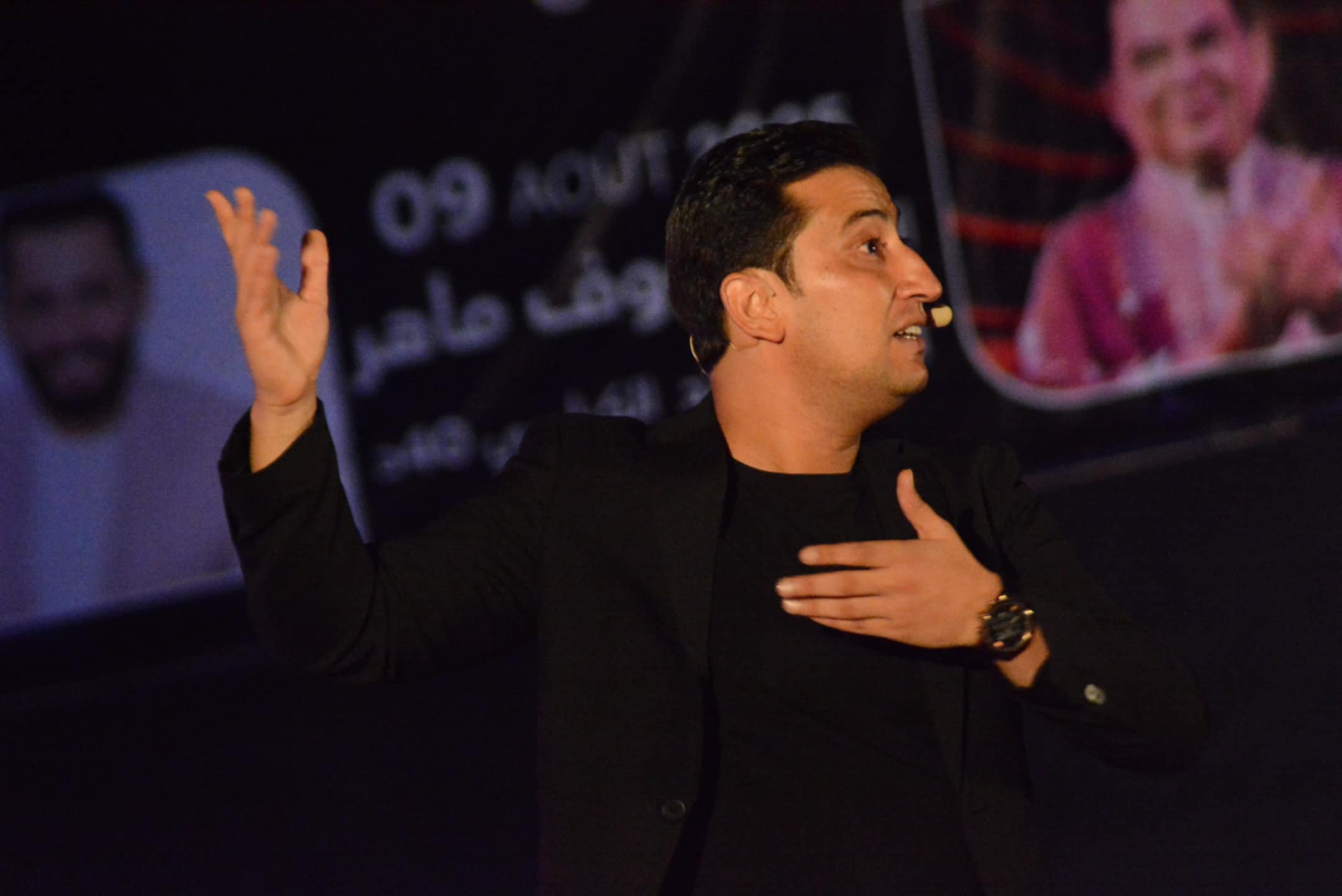 Yassine Salhi est un humoriste talentueux qui se démarque par son humour décapant et sa capacité à captiver son public. Il a su conquérir le cœur des spectateurs hier soir au festival international de Nabeul . Renommé pour ses performances captivantes et pleines d’esprit, ses spectacles combinent habilement humour et observations sociales, captant des audiences de différents horizons culturels. Son one-man-show « Ma Ydhahaknich » (qui signifie « ça ne me fait pas rire » en dialecte tunisien). décapant a mis à nu la société tunisienne es, dans une ambiance conviviale, devant un public nombreux.Une douzaine de situations comiques, indépendantes les unes des autres, que l’artiste a judicieusement concoctées parmi ces nombreux écrits, a constitué son spectacle, livré dans plusieurs interprétations de personnages loufoques, sur une scène nue