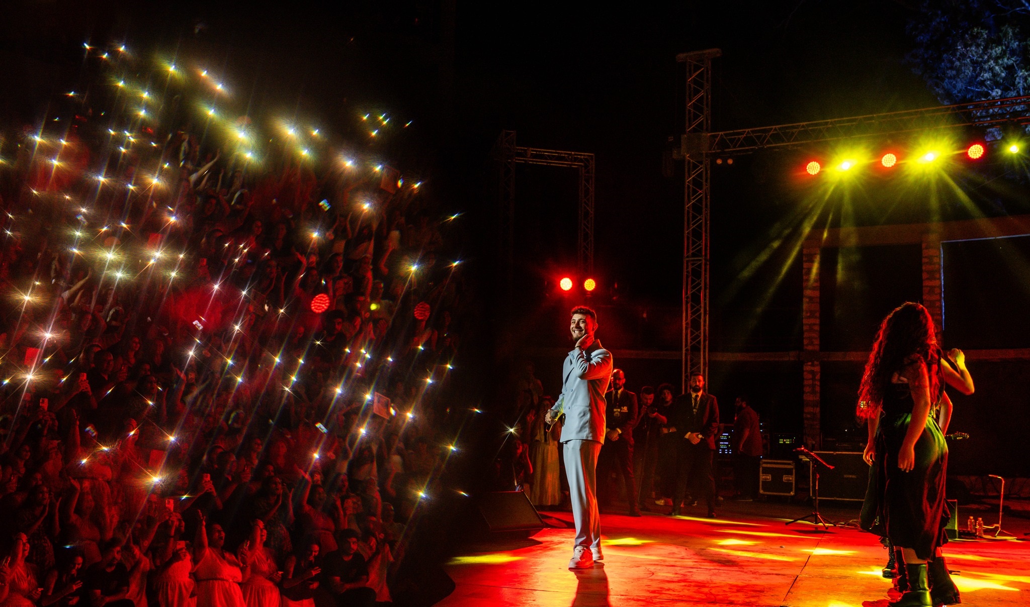 Le chanteur syrien « Al Shami », a enchanté le public d’Hammamet créant des moments d’harmonie et de magie musicale. Les spectateurs, transportés par cette symbiose unique, ont vécu une expérience culturelle riche. Des morceaux divers tels que« Jinak » « Kodhni », « Chill » « Yalli ont fait bouger les grandins . Savourant tous les moments du spectacle dans la délectation, le public a longtemps applaudi l’ artiste .Époustouflants de virtuosité, les musiciens et les danseuses qui l’accompagnaient ont fait montre de toute l’étendue de leurs talents respectifs, sur des cadences composées, où les moindres intervalles harmoniques et rythmiques étaient exploités. Al Shami qui a exprimé son bonheur de se produire devant le public d’Hammamet. De la musique, de la danse et une bonne ambiance. Ce sont les trois ingrédients qui ont marqué ce concert grandiose. Sur la scène, l’artiste tentait ce soir de captiver l’assistance en interprétant des éternels succès qui fascinent le public. Par son charisme, son énergie et la qualité de sa prestation scénique, il a rapidement conquis le public. Un public qui lui a réservé un standing ovation à l’issue d’un concert exceptionnel. Toujours plein d’entrain et de vie, il réussit ce soir à emballer le public et l’emmène avec lui dans ses chansons. Une très belle performance. Le chanteur fait vibrer l’assistance, l’ambiance chauffait. Les rythmes de ses chansons plus soutenus et plus excitants ont fait bouger tous ses fans qui se levèrent pour chanter et danser. Al Shami a fait étalage des mille et une facettes de son talent. Il interpréta avec succès “Laila », « Sametik Sama » « Medley » et « Doctor ». Il séduit la foule par ses musiques colorées. Ses fans tiennent à faire des selfies avec lui. Il ne refuse pas.La soif de se défouler est visible . En pleine fusion avec son public, le syrien a interprété ses plus gros tubes. En communiant avec ses fans, il leur a permis de vivre un très bon moment. Les jeux de lumières hypnotisent le public qui était à fond. Chauffés à blanc, les spectateurs scandaient les paroles de ses morceaux. Al Shami a réuni tous les ingrédients pour nous offrir une performance scénique de grande classe.