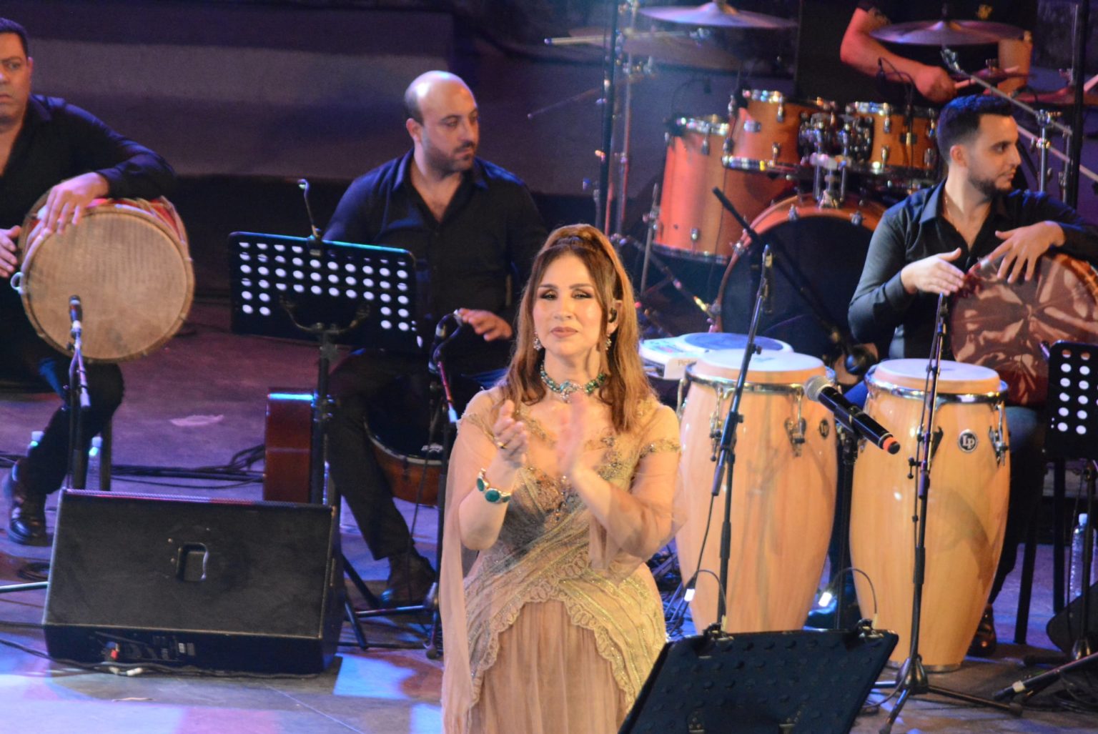 Nabiha Karaouli a fait bouger Hammamet hier soir tout en visitant tous les styles ou presque de son art, avec sa voix sublime, sa dextérité, son immense sensibilité et l’amour intense  qu’il porte à son public. Avec sa voix rauque et son vibrato, elle a séduit ses fans, de «tous âges» qui lui seront «toujours fidèles».Toujours en quête d’une musique novatrice, cette belle voix gafsienne  a su réinventer un monde nouveau, une musique originale et vibrante. Elle  a empli le vaste théâtre de plein air  de Hammamet  par des mélodies merveilleuses berçant un public venu en masse partager des délices d’initiés avec un maître inégalé de la chanson arabe. L’assistance a beaucoup apprécié ses anciens succès comme « Metchaouka », « Ken Kalbi Mtaouaani » et  « Idha Habbouk Errteh ». Ses chansons n’ont cessé de résonner par la suite avec « Mahleha », « yamma », « Wech » et une dizaine d’autres. Le coup de théâtre bluffant était celui dédié à Mabrouka, femme tunisienne violentée qui a brisé le silence en dénonçant les abus dont elle a été victime. Nabiha Karaouli lui rend hommage et appelle à la prendre comme exemple.