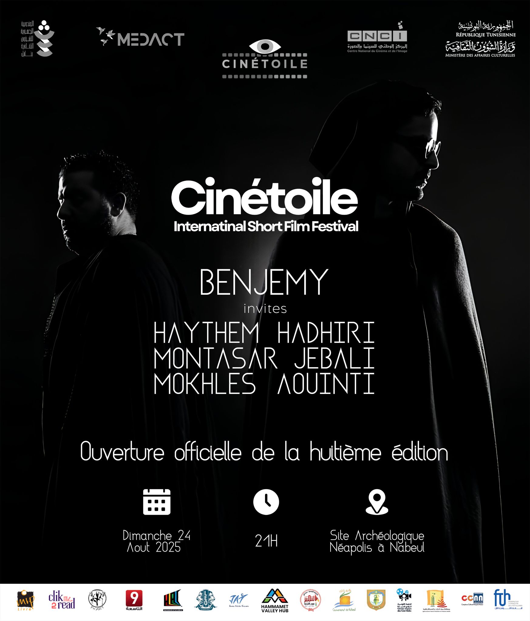 Le Festival international du court métrage Cinétoile s’apprête à illuminer une fois encore les nuits du Cap Bon du 24 au 29 août 2025, Tous les soirs à 21h00 au Site archéologique de Néapolis, au Fort d’Hammamet et au Centre culturel Néapolis..Depuis sa création en 2017, le festival Cinétoile s’est imposé comme un événement culturel majeur, offrant une sélection de films et d’activités variées autour du cinéma et comme le souligne Amir Ouassaaelbel , le directeur du festival, « Le Cinéma sous les étoiles prend tout son sens avec des projections en plein air qui invitent le public à vivre le cinéma autrement, sous le ciel étoilé tout en permettant de démocratiser le court métrage, autrefois réservé aux cinéphiles, afin de créer des ponts entre les cinéastes et le public ».Cette 8éme édition sera inaugurée par un concert ce dimanche 24 août animé par l’artiste Benjemy qui viendra enflammer la scène et donner le ton d’une édition placée sous le signe de la magie et du partage