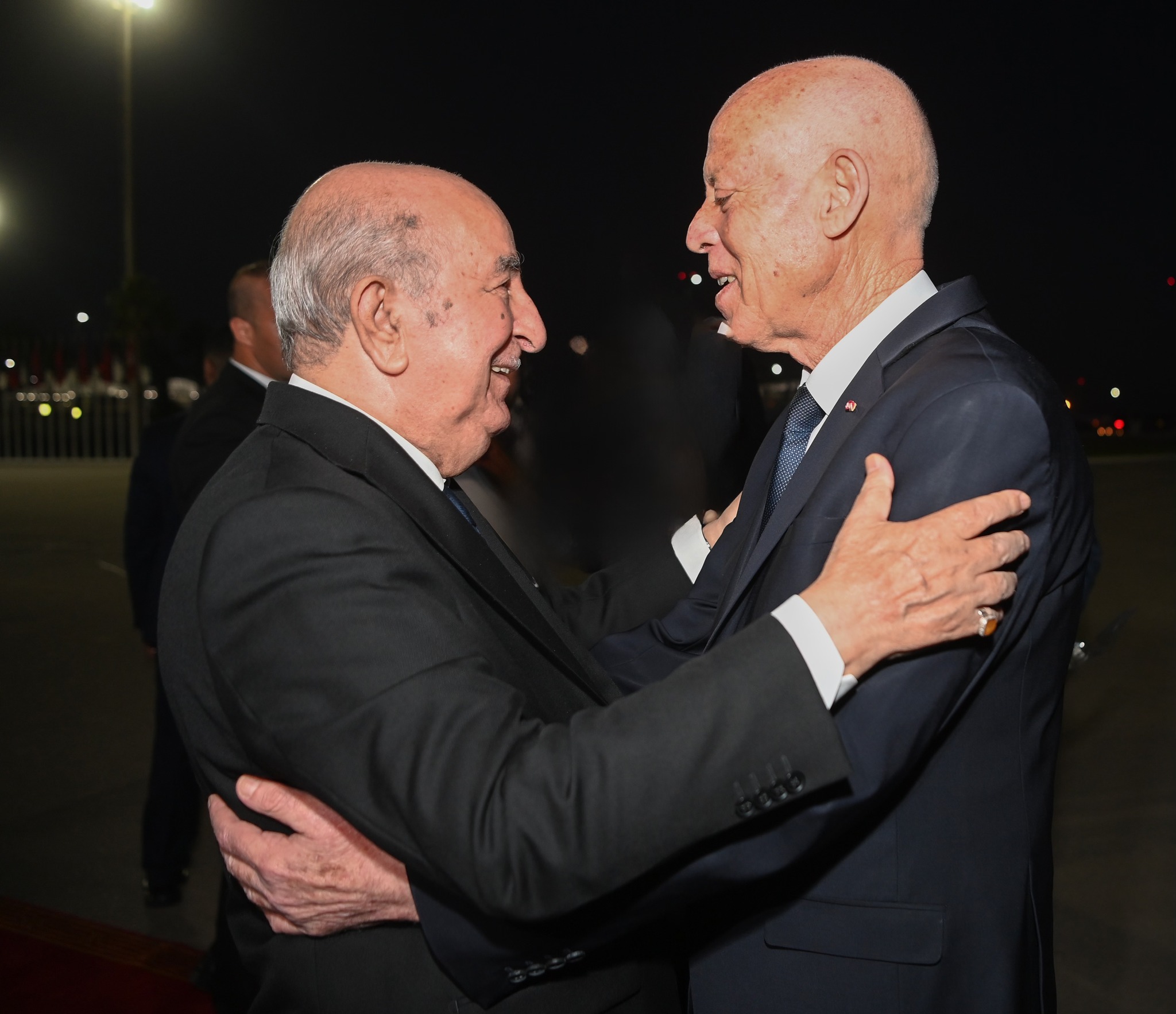 Le Président de la République, Kaïs Saïed, et son homologue algérien, Abdelmadjid Tebboune, ont tenu une longue séance de travail mercredi soir à l’aéroport d’Alger Houari-Boumediene, axée sur le renforcement des relations bilatérales privilégiées et l’examen de questions régionales et internationales d’intérêt commun.